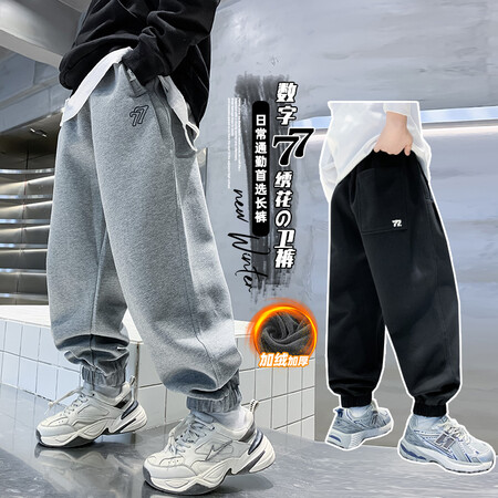 1*7下载视频“TGXZ5985男童字母织带加绒运动裤”