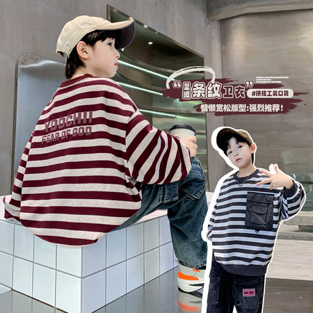 回*去收藏“TGXZ9936男童秋款工装口袋条纹卫衣”