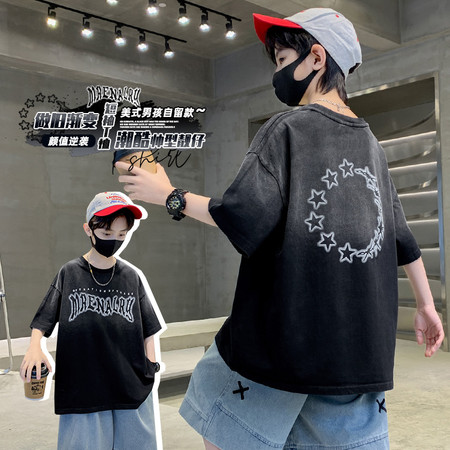 1*3下载视频“TGXZ5871男童天蓝灰脏脏风短袖T恤”